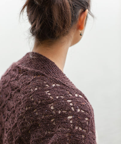 One of our favorite things about this wrap is its versatility—in fact the shrug was born out of some creative musing one afternoon in the shop. We've shown it styled several ways on our pattern, but we ran out of room. Wouldn't it be great buttoned into a sleeve on one side, with the other half pinned over the same shoulder—sort of an asymmetrical wrap! Or folded and buttoned into a cozy cowl. Be sure to experiment with your wrap to see what you like.