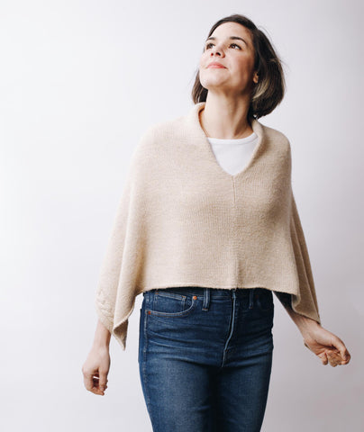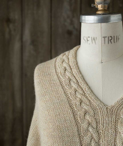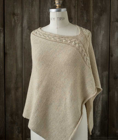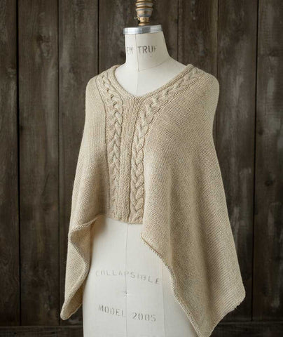 Our Easy Folded Poncho gets a subtle, yet stunning, makeover with this gorgeous cable adaptation. The inset braided cable adorns the edge of our simple poncho―dressing up our already ‘elegant sweatshirt' and adding interest to your knitting.
