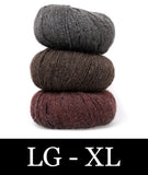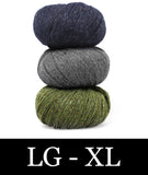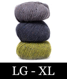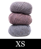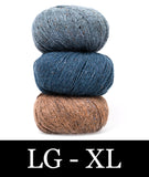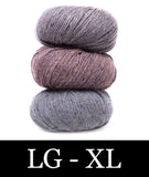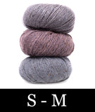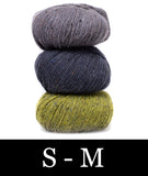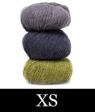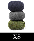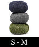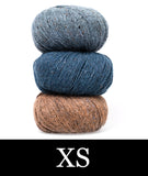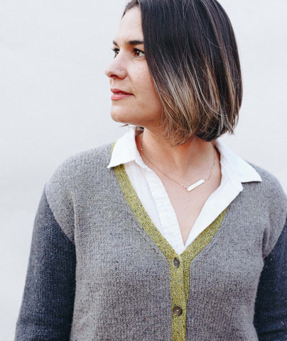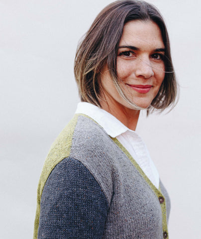 For this colorblocked version of our Go-To Cardigan, we picked two tonal shades of Felted Tweed with one playful accent color. Pick up the pattern below and select a colorway—for a full selection of colors, head over to the Rowan Felted Tweed page.