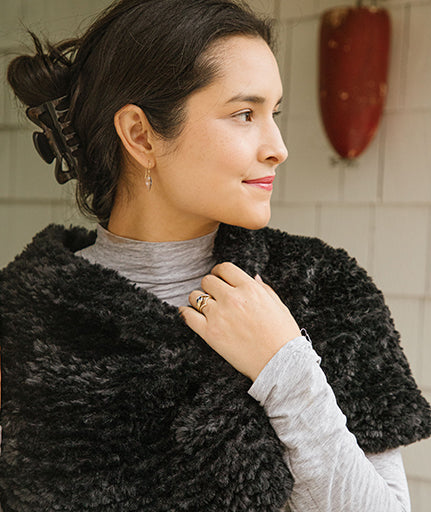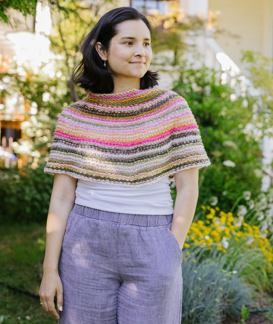 You could call it a capelet. Or a poncho. Or a cowl. Scrunch it up around your neck when you put your coat on—slip it down over your shoulders when you get there. In two sizes, it knits up in an evening—so knit one for you and one for a friend!