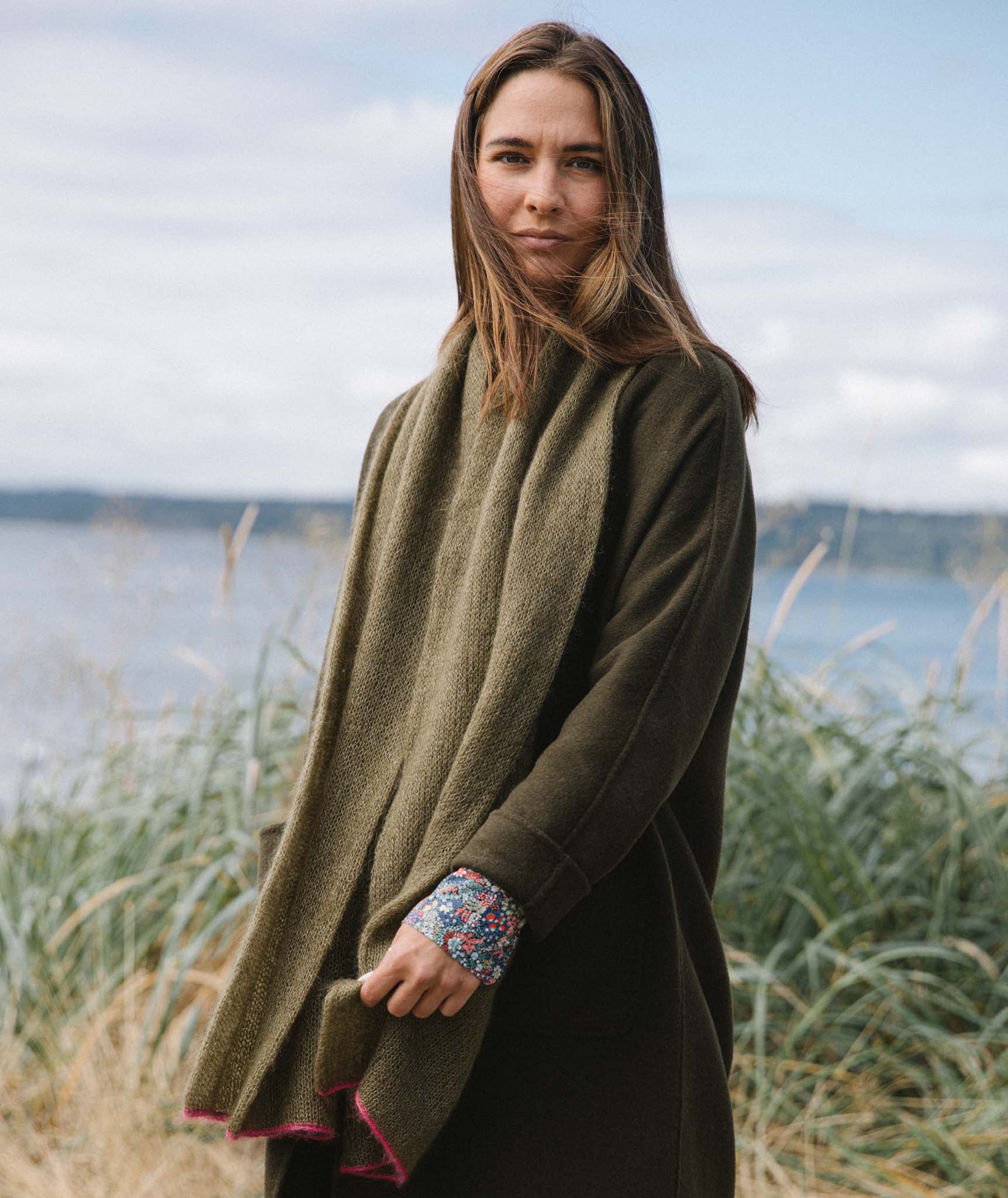 When Boston-based author and long-time Churchmouse friend, Alexandra Dane, attended a writing retreat in Seattle, she stopped by the shop wearing a scarf that turned our heads. It was just the kind of thing we love—simple, simple, simple! Just a sheer tube pressed flat, we’ve knit it again and again.