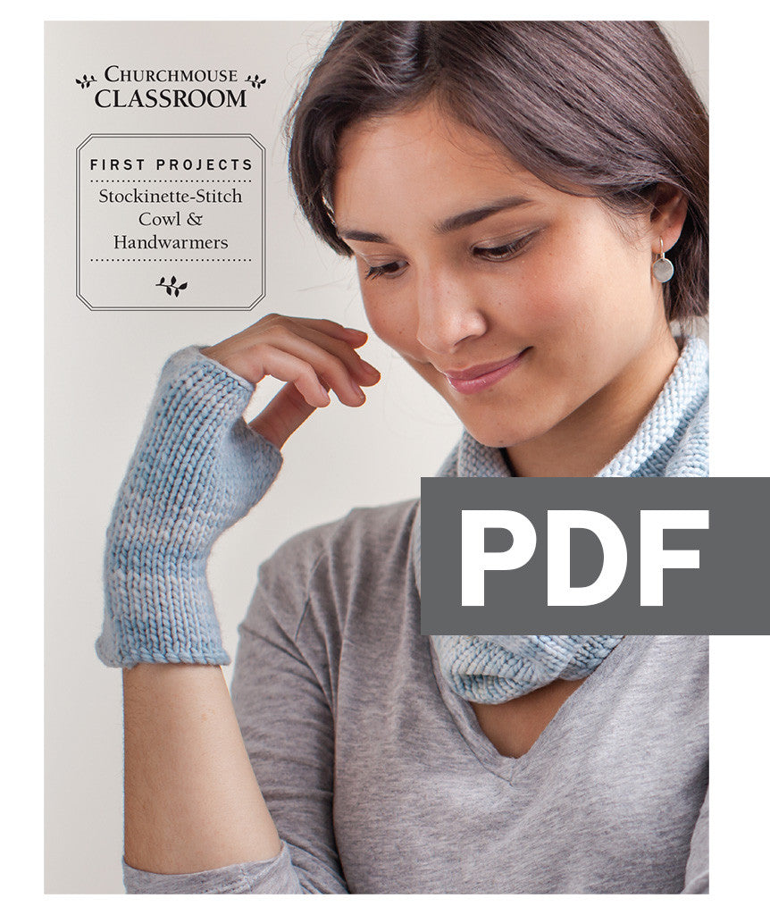 This Churchmouse Classroom First Projects pattern will teach you how to knit soft and elegant stockinette stitch. You'll work stockinette back and forth (knit a row, purl a row) for the handwarmers. For the cowl, you'll be delighted when you knit in the round: the knit side is always facing you, so you just knit, knit, knit. Once you’ve tried it both ways, it’ll make sense—you’ll see!