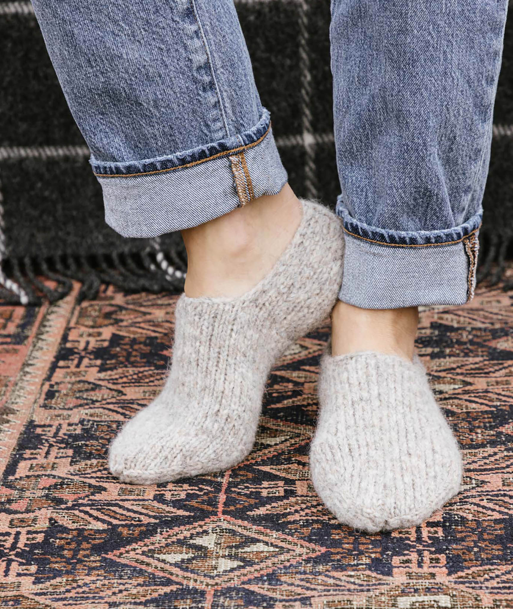 These slipper socks knit up quick as a wink! Inspired by our Turkish Bed Socks, we aimed for easy, cozy, and comfy. The heel is nice and neat, while a slip-stitch edging around the ankle finesses the finish! In 2 gauges, 3 widths, and easy-to-customize lengths, you can knit pairs for all your friends and family.