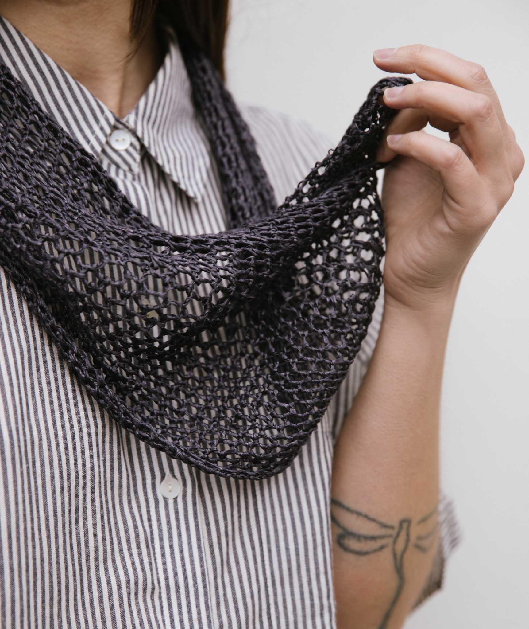 Crocheted Moebius Cowl Using Habu Root Sizing Silk