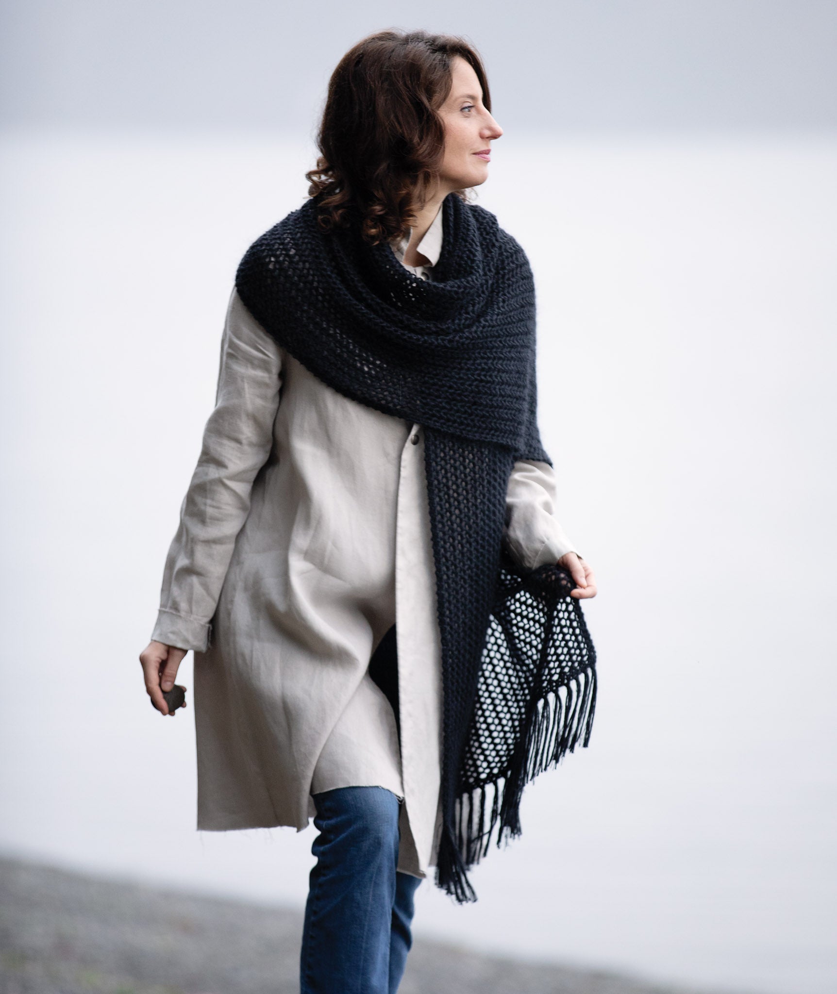 In possibly the simplest lace pattern that exists (it’s a one-row repeat!), we’ve reinterpreted this wrap in so many yarns over the years. With the option to seam it into an easy poncho for a breezy, multi-season layer, it’s quick to knit—it’s got more holes than yarn!