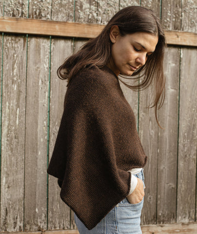 Our Easy Folded Poncho is a relaxing knit and comfy wrap that's flattering on every body. It’s easy to knit (just one long stockinette rectangle), easy to finish, and easy to throw on. For this version, we’ve created a free adaptation to show you how to knit our original design in this slightly heavier yarn and still preserve a marvelous drape. We gauged it up and changed the stitch count. It's all there in the free Adaptation.