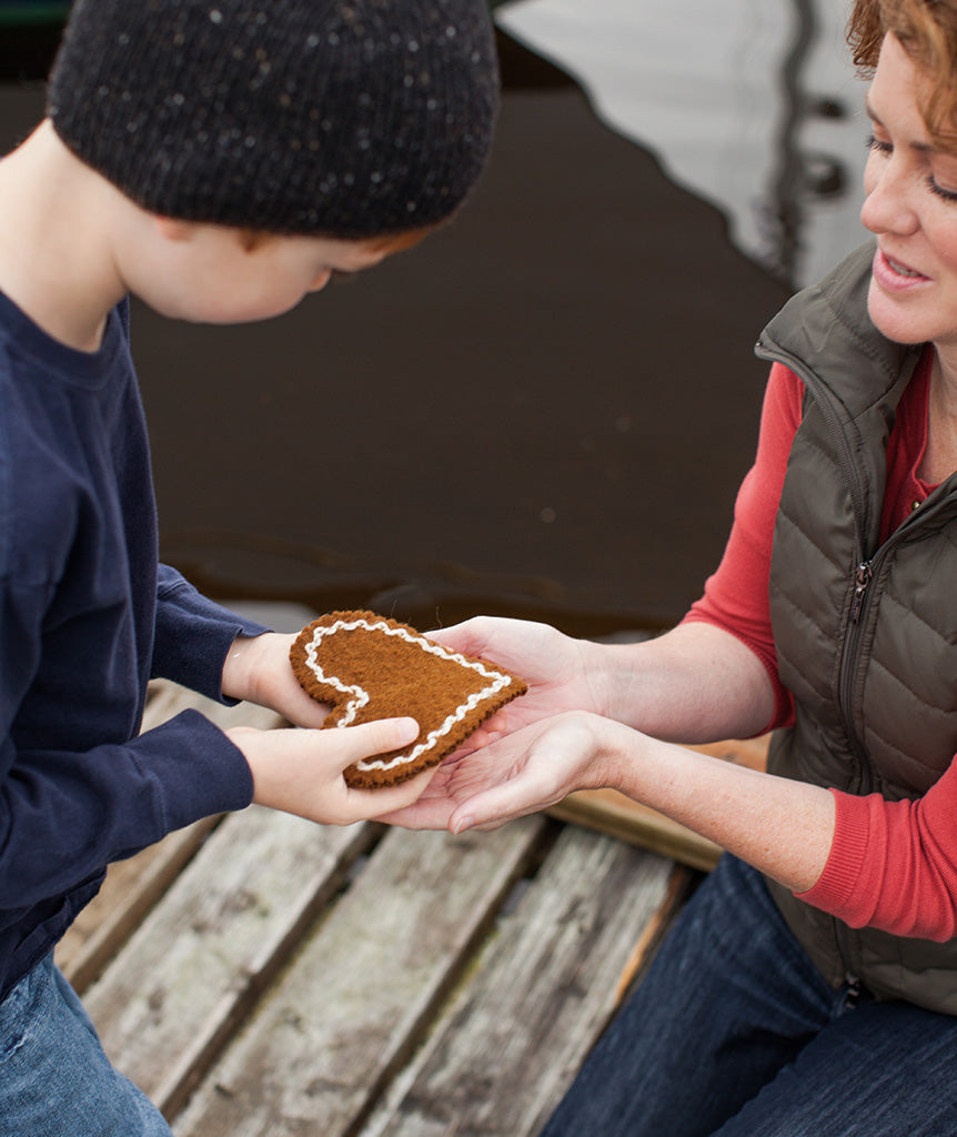 The knitting's as easy as pie—easier, actually! Once your knitted piece is fully felted, simply use the included templates (or trace your own favorite cookie cutters) to cut 'dough' into jolly cookie shapes. Decorate as desired (we've included embroidery instructions). Hang them on your tree, tie them onto packages, string garlands—you get the idea. Yum!