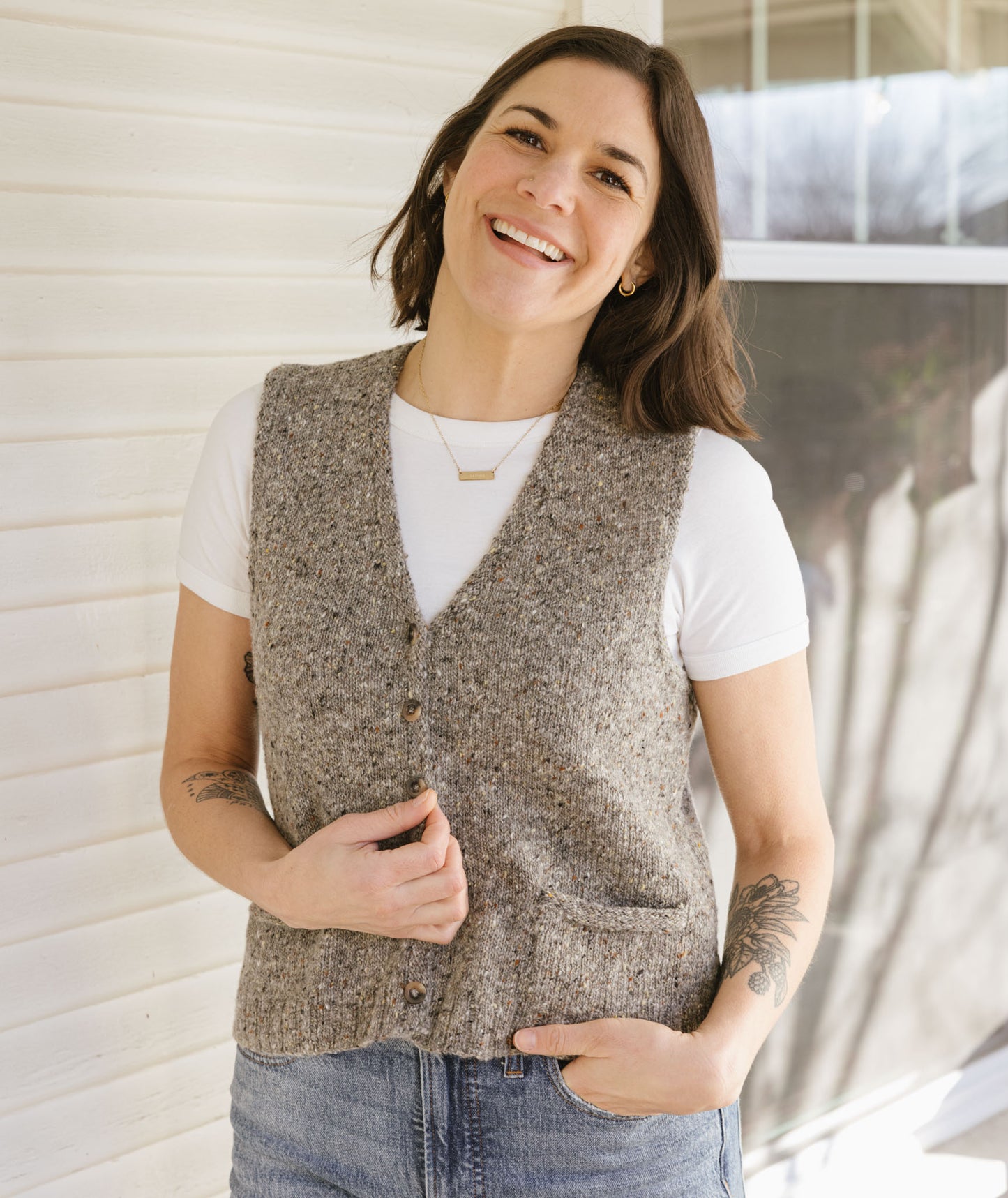With simple styling that lends itself to the classroom, workplace, or weekend, this vest is so classic, so quintessential, it could become your uniform. The jumper length has a certain academic chic. The abridged, hip-length version is a flattering layer without the bulk of a sweater. Either way, this pattern is a nice little primer of techniques you’ll use again and again.