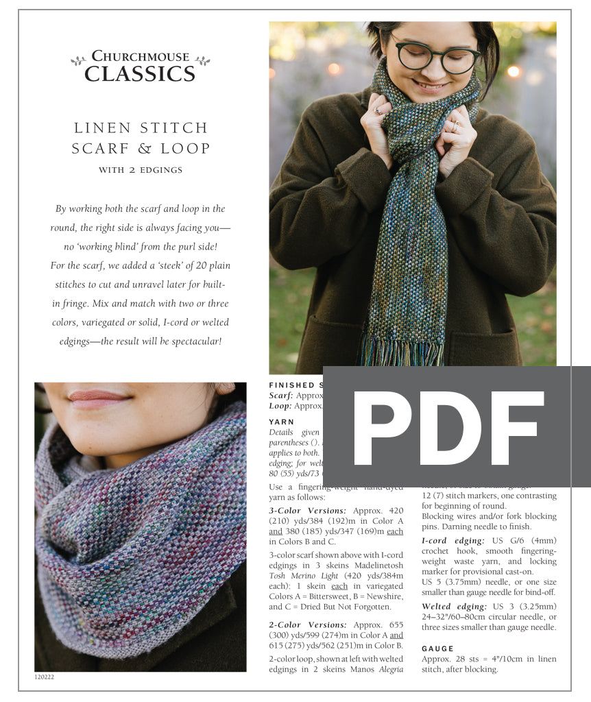 This pattern takes linen stitch and throws it for a loop—literally! Worked in the round, this beloved stitch becomes just a little easier! For this Linen Stitch Scarf, we simply work the same two stitches over and over, always working on the right side. Then, we get a little adventurous. Using a spot of stockinette stitch as a guideline, or ‘steek’, we cut the loop into a fringed scarf! Of course, you can also leave the piece as a stylish loop if you like. Our pattern walks you through both the scarf and loop, along with instructions for two different edges and for a three-color or two-color version. Plenty of options to mix things up!