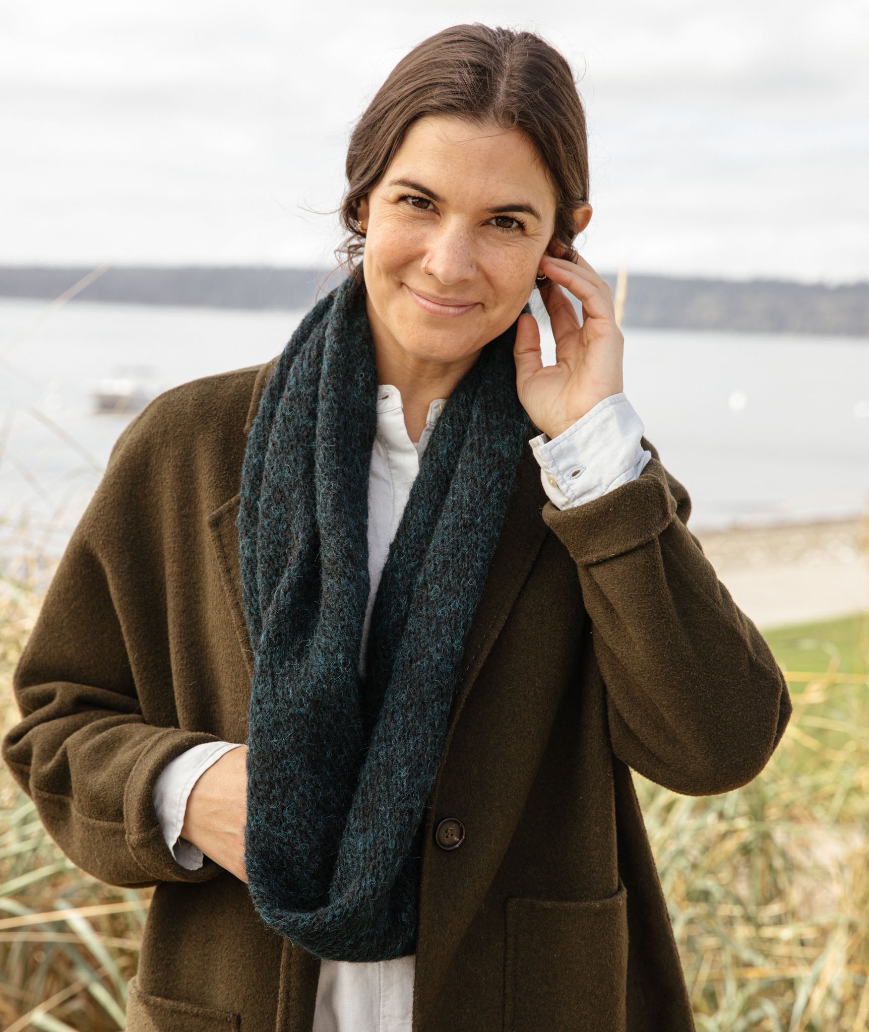Sometimes, all it takes is a little something around the neck and shoulders to warm you up. A timeless favorite, the Mohair Bias Loop adds just the right amount of comfort and elegance to your wardrobe. Worn twisted double as a cowl or around your shoulders as a wrap, this loop is equally talented at dressy and casual.