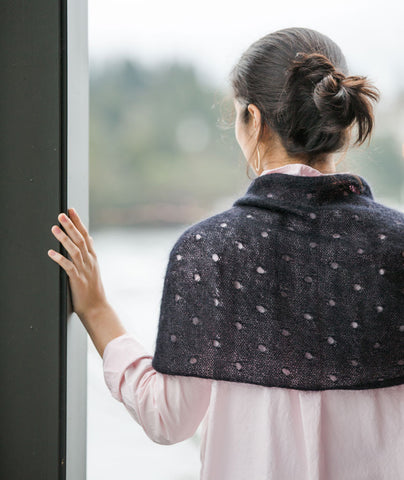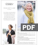 There’s something so cheerful about polka dots! They add a little fun to anything you wear. Here we’ve created ‘dots’ with a widely spaced eyelet stitch pattern that’s easy to knit and easy to remember. A slip stitch edging gives a slightly firmer edge to your scarf—no curling! Because the fabric is so light and floaty, a lavish scale seems just right. It’s a lot of knitting but the rows fly happily by.