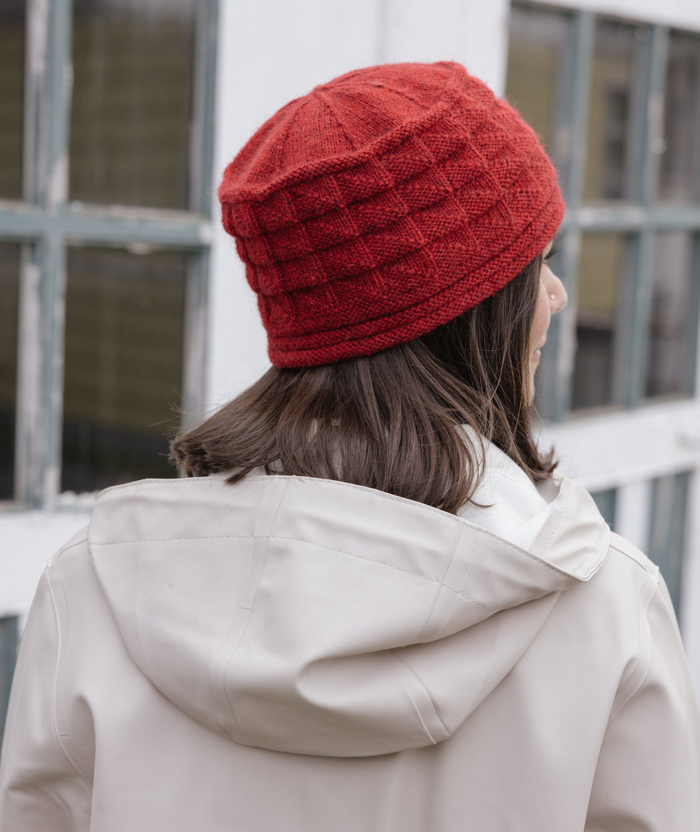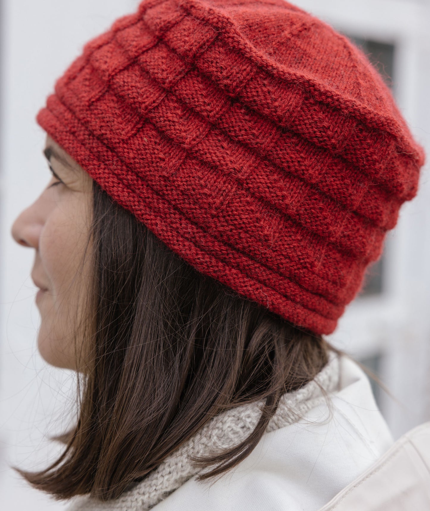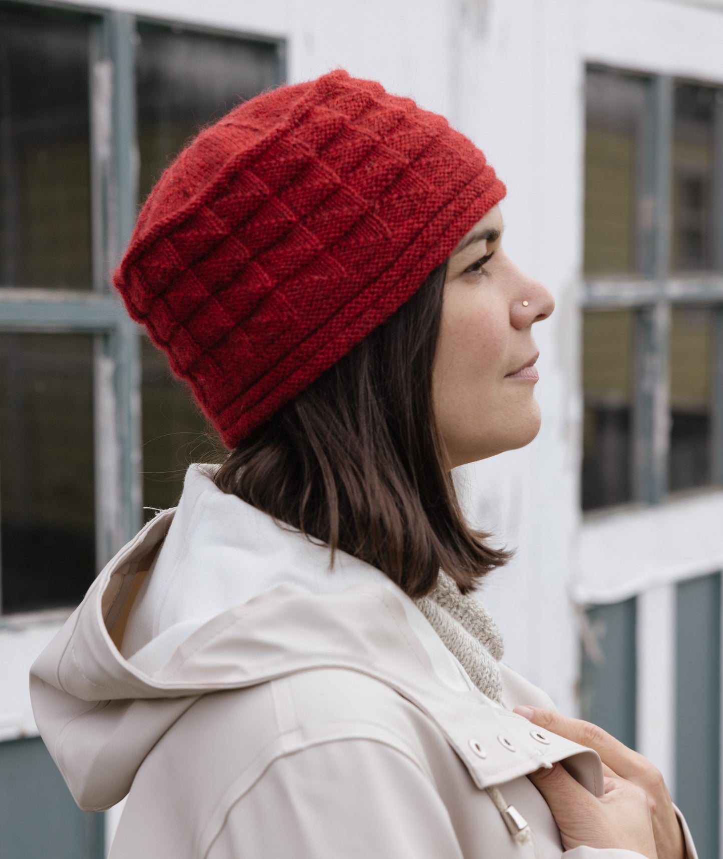 We love the tradition and history of ganseys—warm, durable, supple garments originally developed to protect seafarers from the cold and sea spray! This cute pillbox hat, with a flat circular top, pays tribute to that beloved sweater. We’ve provided two traditional gansey pattern charts—”Nautical Flags” and “Tree Line”, but you can also create your own!