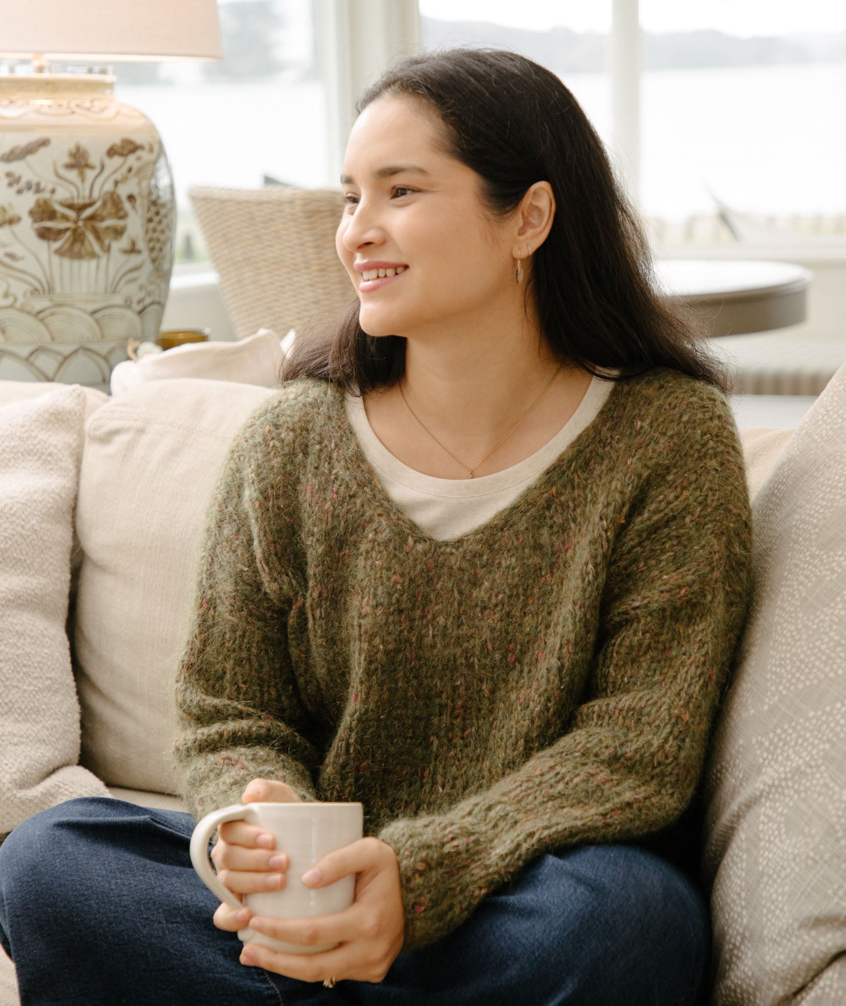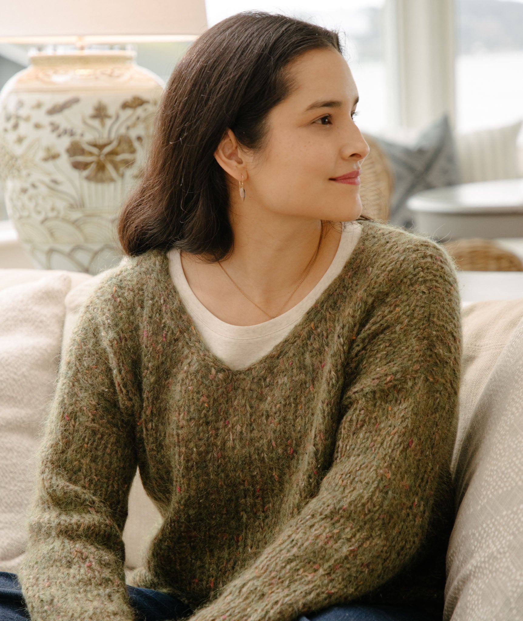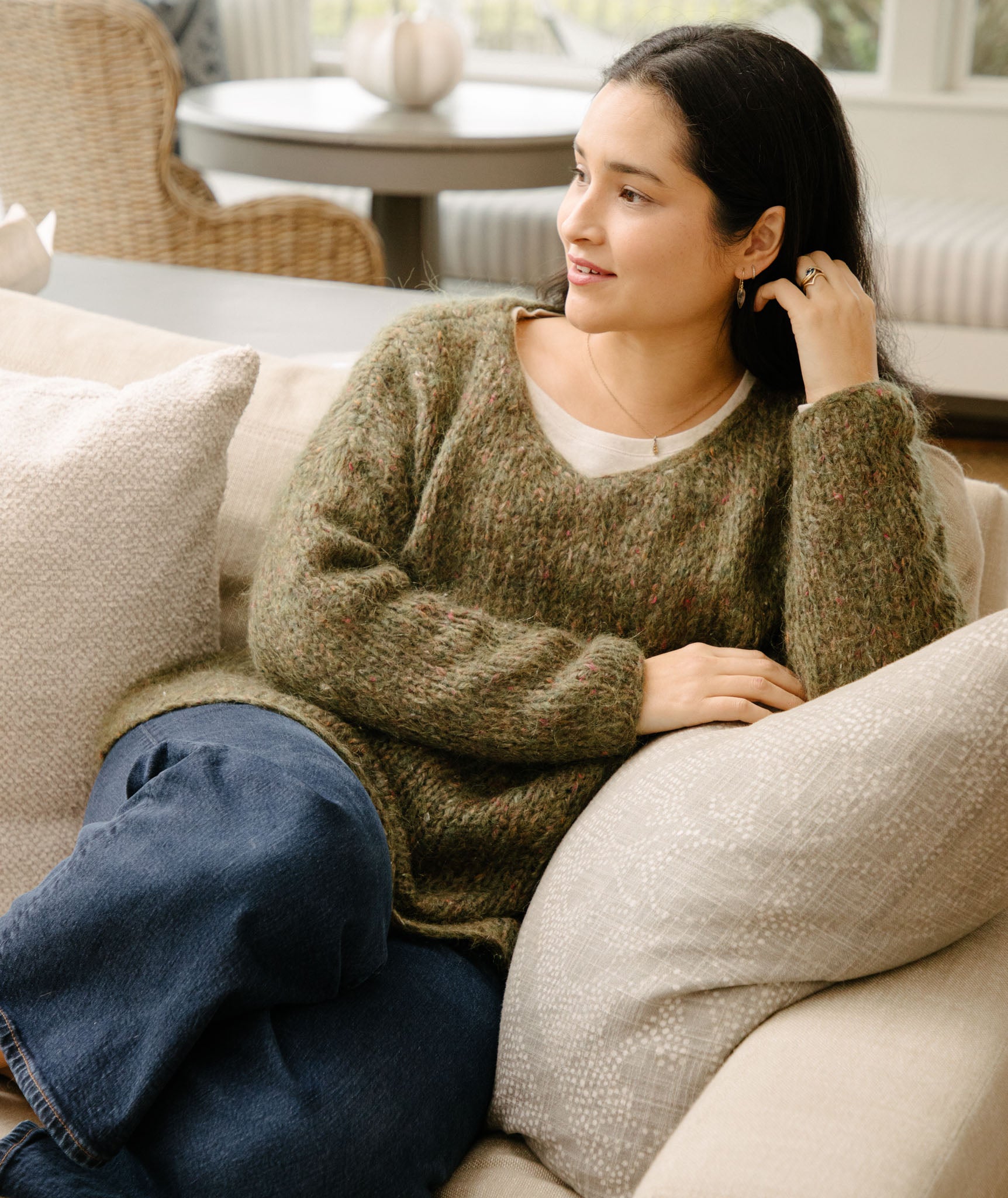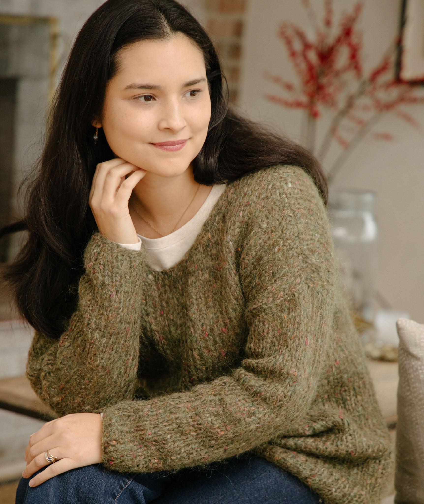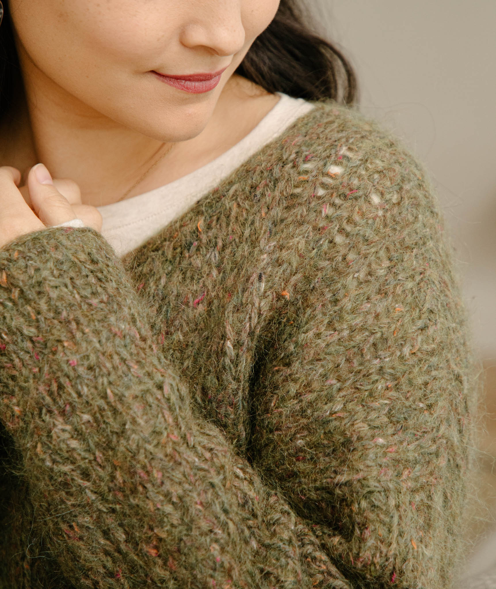 This pullover is designed with lots of ease (8–12"/20–30cm).