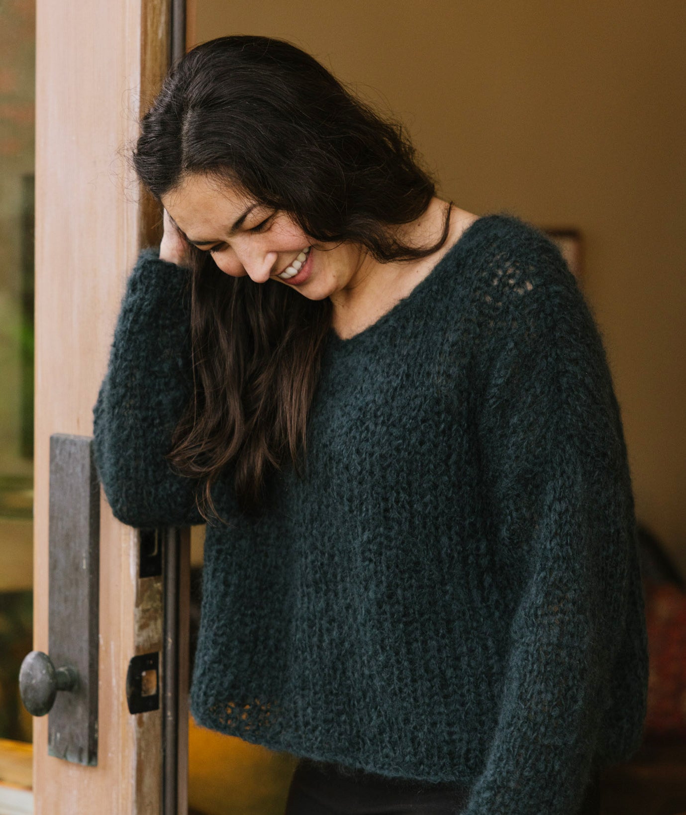 Relaxed and roomy, we love the cozy, weekend-ready comfort of the Slouchy Pullover. It’s perfectly balanced between lightweight and huggable! The flattering, soft ‘V’ neckline and short-row shaped cuffs keep the generous scale from becoming overwhelming—a cuddly wardrobe essential, indeed. We’ve knit a version at a cute, cropped length as well as an adorable, hip-skimming length!