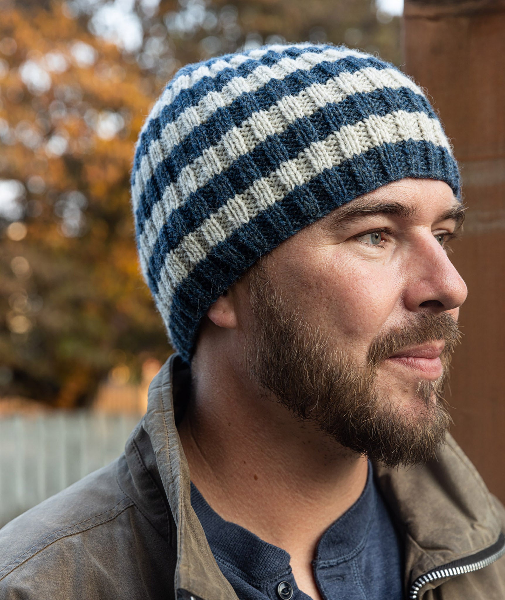 In this pattern, we blend the sportiness of stripes with the snug squish of ribbing to create a cozy, classic beanie! Our design uses a clever little trick to smooth up the stripes within the ribbing texture—an all-knit row (instead of the K2/P2 ribbing) as you change colors crisps up that definition! We also provide instructions for three different sizes, so you can make stripey hats for your whole family!