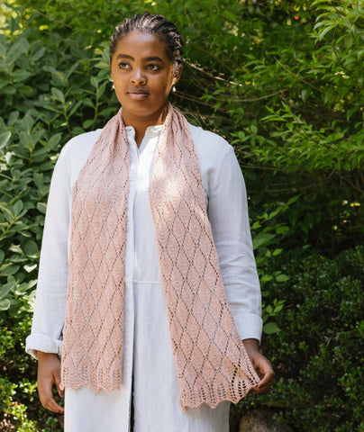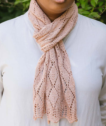 The Tea Leaf Lace Scarf & Shawl is such a pretty accessory for tea parties, garden strolls, or whenever you need a light layer. The lavish scale is just right to wrap around your shoulders or bundle around your neck! The leafy stitch pattern is fairly simple and the clues in the knitting are quite easy to read—encouraging for new lace knitters and relaxing for seasoned lace knitters!