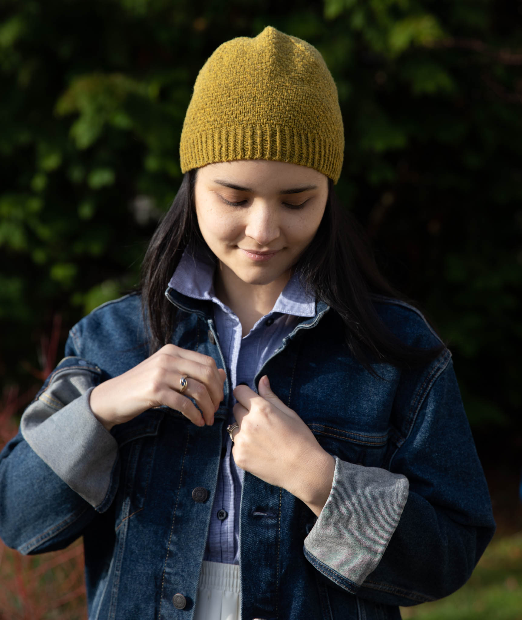 Freshy Ahmadian Millsap designed this versatile beanie for her brother-in-law, an architect in Chicago. It had to look smart for meetings and a little hip for weekends. And it had to keep the ‘Windy City’ wind out of his ears. Check, check, and check! The dense tweed stitch pattern takes on a handsome honeycomb look when worn inside out—’cuz that happens.